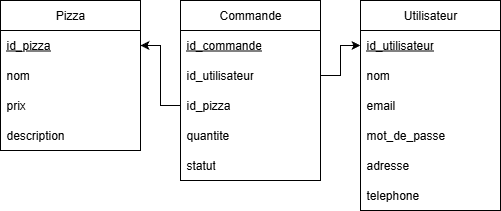 Sur cette page, il est également possible d'utiliser Python avec la base de données de la pizzeria dont le schéma relationnel est donné ci-dessous.